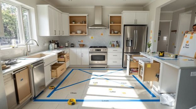 The work triangle between your sink, stove, and refrigerator should measure between 4 and 9 feet on each side. Shorter than that and two people cannot move through the kitchen comfortably. Longer than that and daily cooking becomes exhausting.
