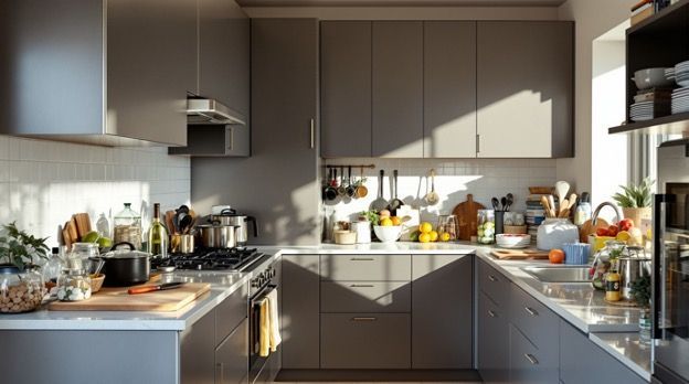 - Deep base cabinets without pull-out shelving become dead zones almost immediately. Anything pushed to the back stays there.